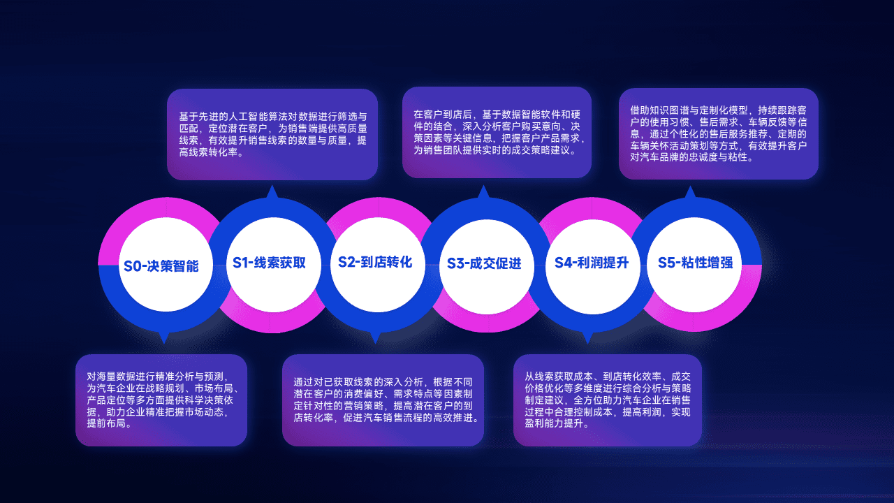 通过拓宽潜在客户来源、、优化线索分配并提高到店转化率,,,以增强销售效率。。同时,,利用线索数据不断优化分析模型,,,,有效提升转化率,,,,扩大营销影响力。。